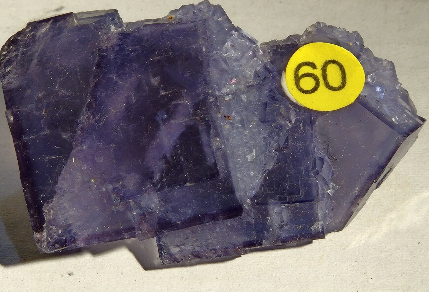 - Forme cristalline : Comme son nom l’indique, cette fluorite se présente souvent sous forme de cristaux cubiques bien définis, parfois avec des macles (cristaux jumeaux) ou des empilements de cubes.