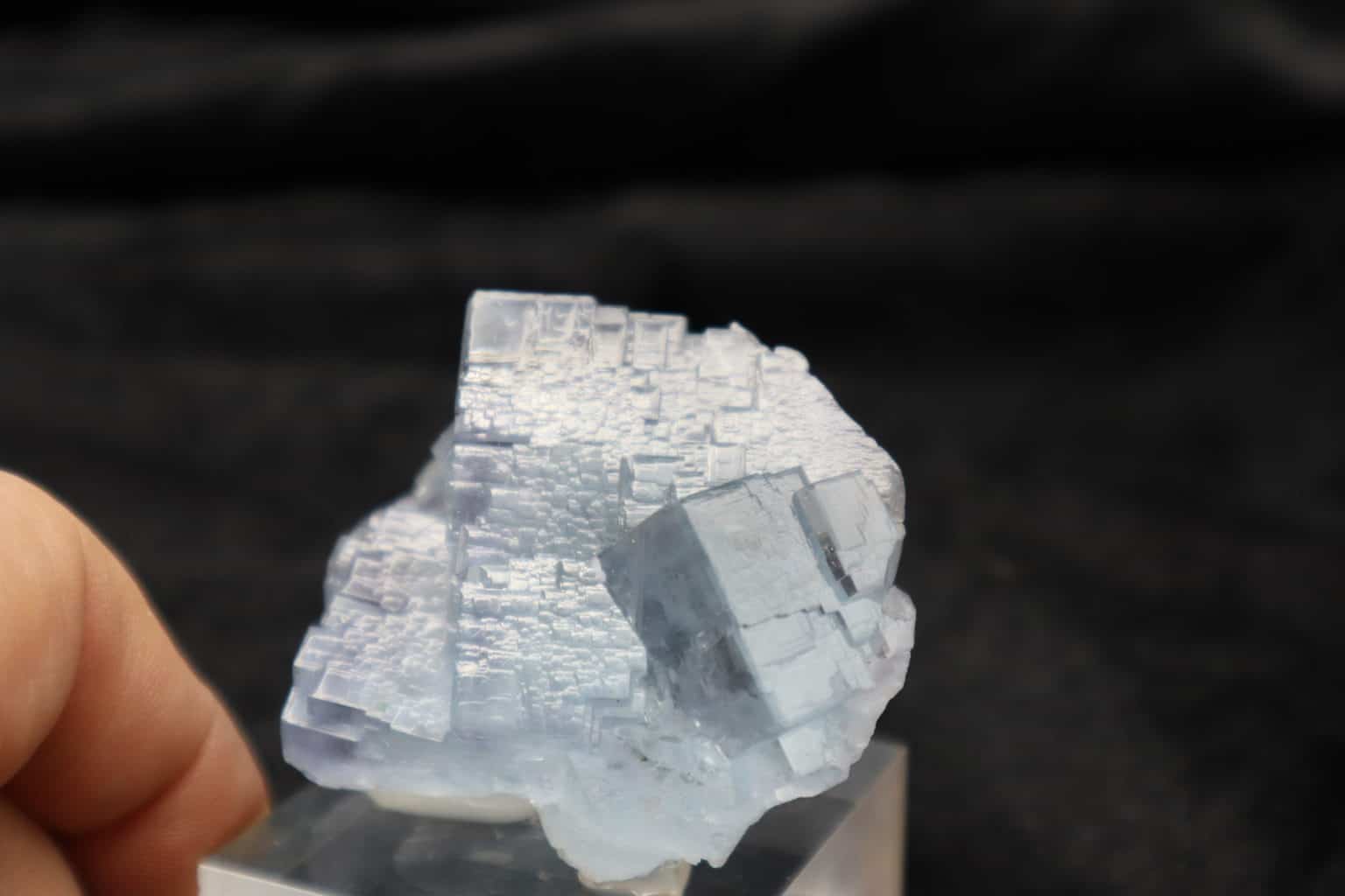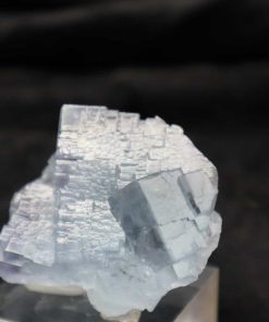 Fluorite bleue Huergo district fait partie de ces minéraux commun mais particulièrement appréciés d’un bon nombre de collectionneurs pour ses formes variées et la beauté de ses couleurs. Elle peut être incolore, blanche, violette, bleue, jaune, marron, rose, rouge , noire! En France elle bénéficie encore de l’appellation fluorine. Certains amateurs ne collectionnent que cette espèce minérale et en ont fait leur thème fort. C’est un minéral omniprésent dans de nombreux et différents gites minéralogiques. D’une formule chimique CaF2 il apparait majoritairement dans les filons d’origines hydrothermaux de basse à haute température. Sa forme de base sera le cube pour les basses températures et l’octaèdre pour les hautes températures. Elle forme des cristaux polysynthétiques(trémies ou pyramides aztèques) et quelquefois sous forme sphérique. Dureté 4 et densité 3.1 sa particularité est son éventail de couleurs qui couvre tout le spectre visible! Certaines même sont fortement fluorescents sous la lumière ultra violette!