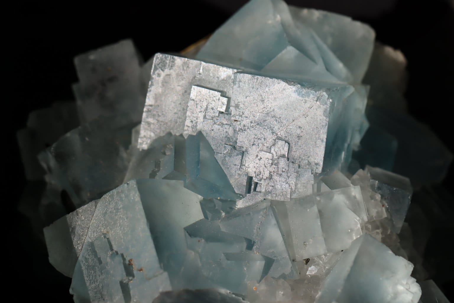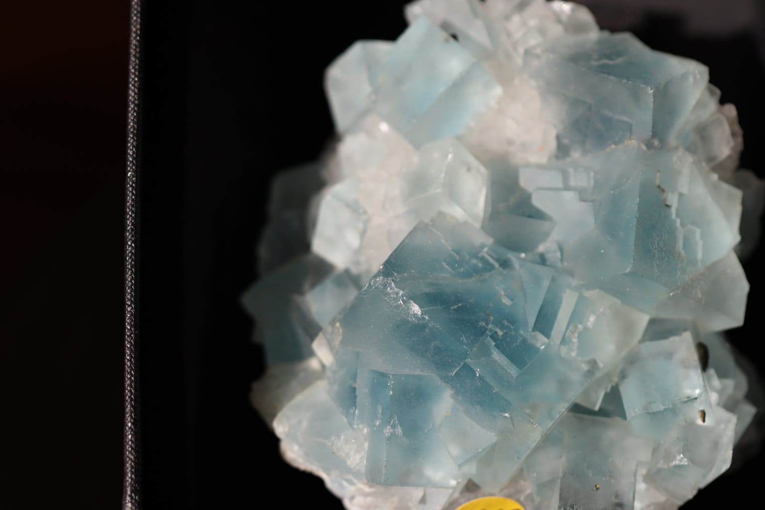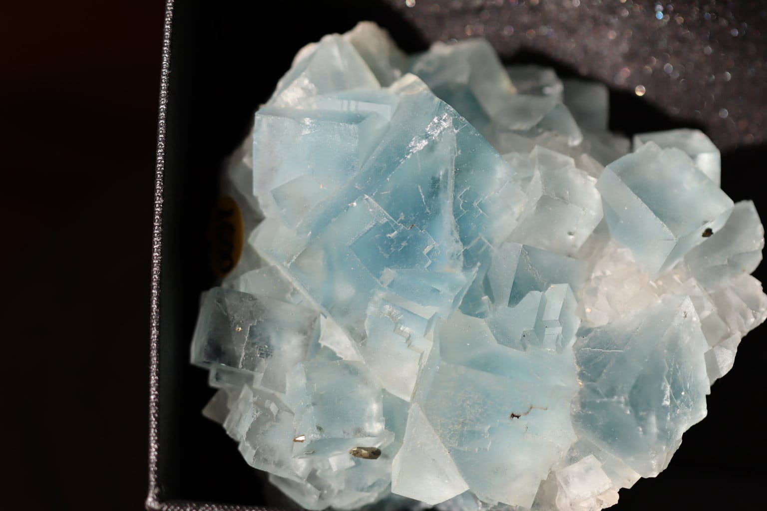 Fluorite du Burc fait partie de ces minéraux commun mais particulièrement appréciés d’un bon nombre de collectionneurs pour ses formes variées et la beauté de ses couleurs. Elle peut être incolore, blanche, violette, bleue, jaune, marron, rose, rouge , noire! En France elle bénéficie encore de l’appellation fluorine. Certains amateurs ne collectionnent que cette espèce minérale et en ont fait leur thème fort. C’est un minéral omniprésent dans de nombreux et différents gites minéralogiques. D’une formule chimique CaF2 il apparait majoritairement dans les filons d’origines hydrothermaux de basse à haute température. Sa forme de base sera le cube pour les basses températures et l’octaèdre pour les hautes températures. Elle forme des cristaux polysynthétiques(trémies ou pyramides aztèques) et quelquefois sous forme sphérique. Dureté 4 et densité 3.1 sa particularité est son éventail de couleurs qui couvre tout le spectre visible! Certaines même sont fortement fluorescents sous la lumière ultra violette!