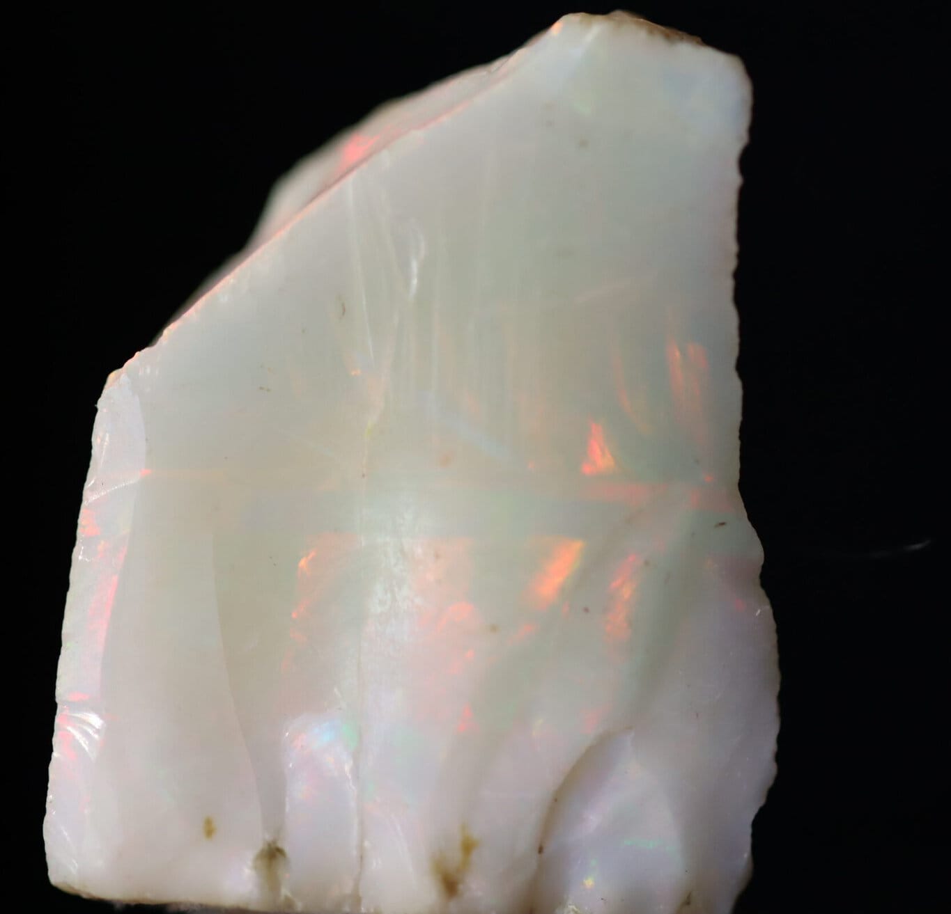 Opale éthiopie 5 est une forme de silice hydratée très fréquente de basse température qui diffère des autres formes de silice (calcédoine). Elle se forme plutôt en surface dans des conditions acides. Elle peut être présente partout. On la rencontre aussi bien dans les contextes sédimentaires (comme en Australie), que dans les contextes volcaniques (Ethiopie). Mais aussi dans certains filons métallifères. C’est une espèce minérale qui ne possède pas de structure cristalline et donc considérée comme amorphe. L’opale se classe en quatre types : Opale AG , Opale CT (lussatite) , Opale AN (hyalite) et Opale C. Elle est constituée de billes de silice de taille nanométrique empilées compactes et régulières. Commercialement on l’affuble de d’appellations telles que opale noble ou opale précieuse car elle est très recherchée par les bijoutiers et joailliers. Elle est connue pour ses fantastiques feux multicolores dûs à la réfraction de la lumière dans les billes de silice.