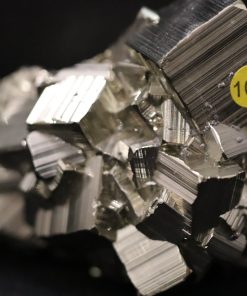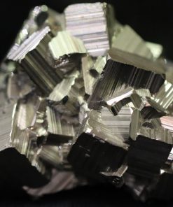 Pyrite cubique Andes est de loin le sulfure de fer le plus courant. Cette espèce minérale est présente dans tous les contextes gîtologiques. Elle apparait en abondance dans tous les filons hydrothermaux de basse à haute température, les fentes alpines, les skarns, les métamorphismes des schistes ardoisiers. Elle peut se former aussi lors des diagénèses de roches sédimentaires comme la craie ou le calcaire. Rencontrée en gros amas, elle constitue un important minerai de soufre. Espèce très intéressante pour les collectionneurs, car elle se présente sous de nombreuses formes cristallographiques. Système cristallin cubique ; dureté 6; densité 5. Couleurs jaune, blanc gris, marron. L’habitus sera cubique, pentagonododécaédrique, octaédrique et plus rarement icosaédrique. D’un éclat métallique la pyrite vient du grec pyros (feu) par allusion aux étincelles qui jaillissent lors d’un choc. Chispa(étincelle) en péruvien est une variété de pyrite en petits cristaux agglomérés. D’ailleurs les plus grands gisements mondiaux se situent au Pérou avec principalement les mines de Huanzala département Huanuco et Quiruvilca (Ancash). Ces mines ont produit de magnifiques cristaux de formes octaédriques, pyritoèdres, et cubiques de 25 cm d’arêtes. Les cristaux sont parfois triglyphes(les faces du cube sont striés selon trois directions différentes). On la rencontre également à Pasto Bueno (Trujillo) et le district minier de Huaron (cerro de pasco). Ces gisements péruviens de pyrite ont achalandé de nombreuses collections minéralogiques publiques et privées . Une autre bonne partie fut dirigée sur le marché décoratif. Par son éclat jaune bronze métallique elle est encore appelée “or des fous ” pour sa ressemblance au précieux métal et la possible confusion avec celui ci! En Espagne citons le gisement de navajun, près de Logrono, dans la province de Rioja, qui livre en abondance des cubes parfaits dans les bancs calcaires .