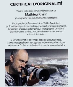 Mathieu Rivrin est un photographe français, originaire de Bretagne. Photographe professionnel né en 1989 à Brest, il est profondément passionné par les paysages et les phares. Il photographie en général la Bretagne mais aussi le Mont Saint-Michel, l’Islande et l’Écosse. Également chasseur de tempêtes, il a photographié Christine, Eleanor, Martin, Justine…ces tempêtes monstres avalant le littoral finistérien.